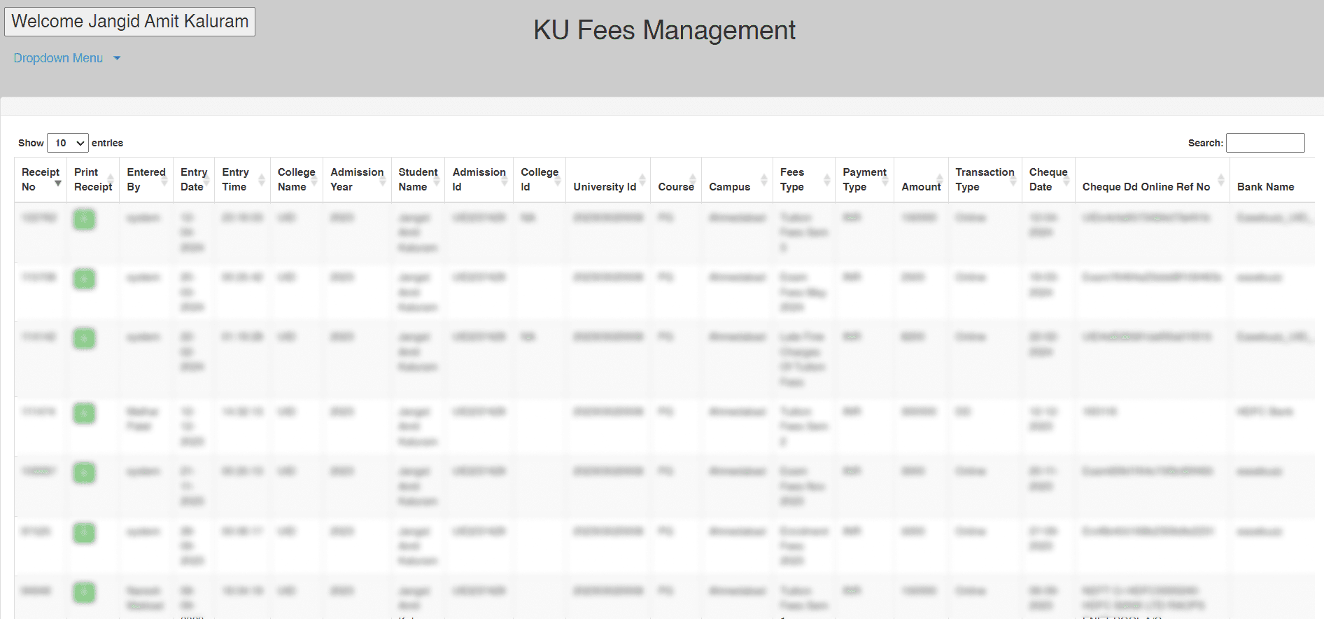 Over 90% of the students pay their Tuition Fees through Online Payments (Cheques, Demand Draft are rarely used)